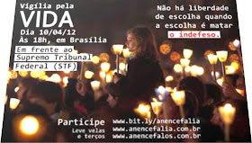 Nesta terça-feira, 10 de abril, a partir das 18h, será realizada a Vigília pela Vida, em frente ao STF, que na quarta-feira irá julgar a legalidade do aborto de anencéfalos.